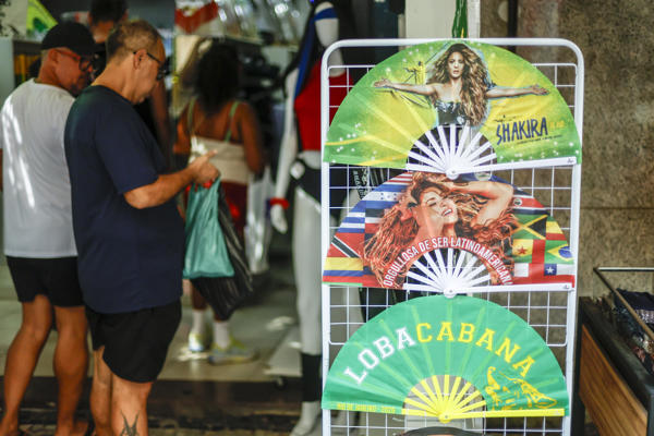 En las tiendas del popular mercado abundan camisetas con los colores de la bandera de Brasil y la imagen de una loba plasmada en el frente acompañada del texto LobaCabana, en referencia a la artista y al espectáculo que ofrecerá en la icónica playa.